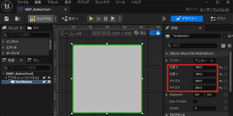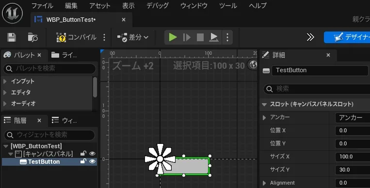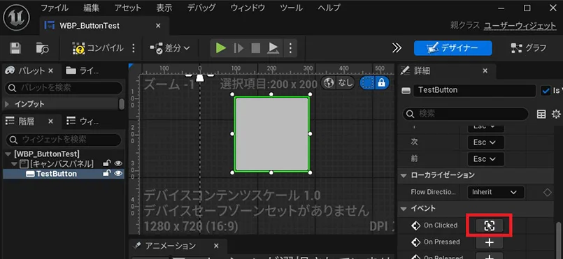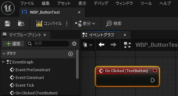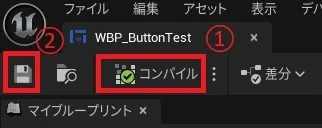 ▼09.「WBP_ButtonTest」をコンパイルして保存します。