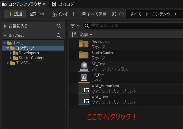 ▼10.コンテンツブラウザ上で右クリックし、新規レベル「LV_ButtonTest」を作成します。