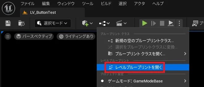 ▼11.「LV_ButtonTest」を開き、レベルブループリントを開きます。