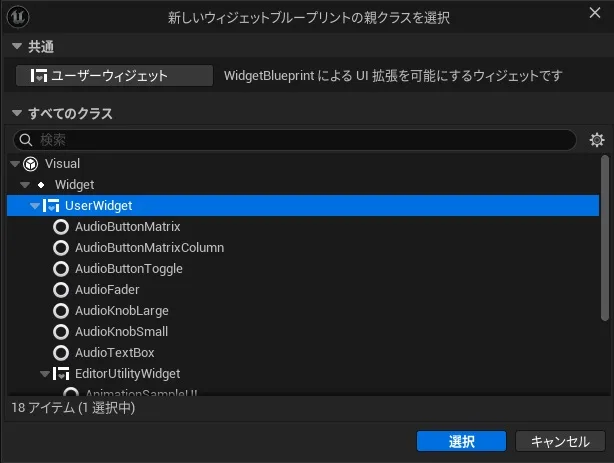 ※UI用のBlueprintのため、ウィジェットブループリントを選択します。