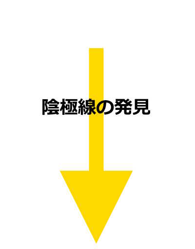 から+電極側(アノード)に飛ぶ電子の流れの事、ー電極側から +電極側に発射されるので陰極線と